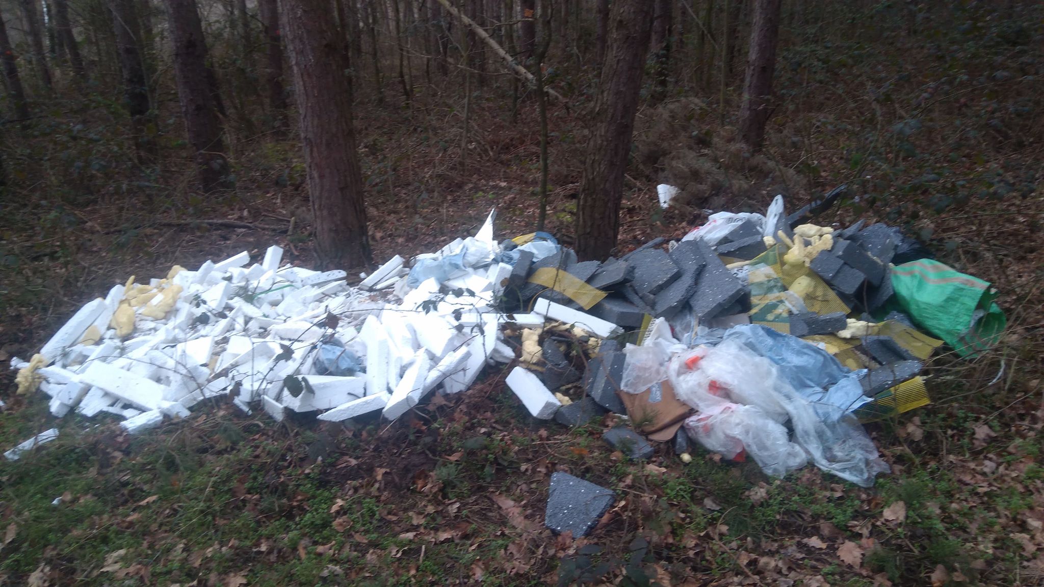Styropian, pianka montażowa, kątowniki to wszystko można znaleźć w lesie. W miejscowości Jeziorki ktoś wysypał przyczepę takich odpadów.