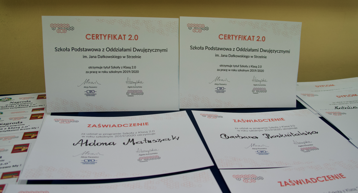 SZKOŁA DAŁKOWSKIEGO OTRZYMAŁA TYTUŁ „SZKOŁY Z KLASĄ 2.0” POTWIERDZONY CERTYFIKATEM