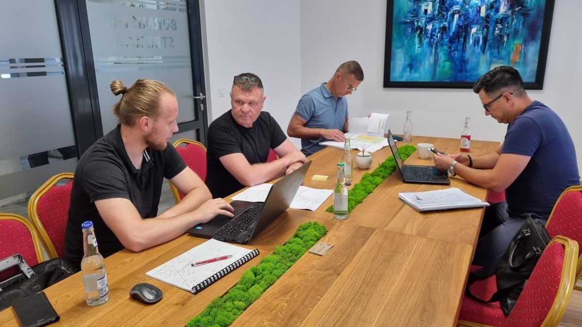 Ponad rok trwały rozmowy na temat budowy sieci światłowodowej w gminie Strzelno. Dzisiaj w Urzędzie Miejskim w Strzelnie burmistrz Dariusz Chudziński, kierownik Wydziału Inwestycyjnego Piotr Lessnau, inspektor nadzorujący budowę rond oraz remont ul. Kościuszki w Strzelnie Jarosław Góralczyk oraz informatyk UM Grzegorz Sienkiewicz wspólnie z projektantem firmy Światłowód Inwestycje przeprowadzali kolejne uzgodnienia na temat budowy szerokopasmowego internetu opartego o sieć światłowodową. Firma Światłowód Inwestycje to spółka córka firmy ORANGE i nie ma nic wspólnego z firmą dotychczas instalującą swoją sieć na terenie gminy Strzelno.