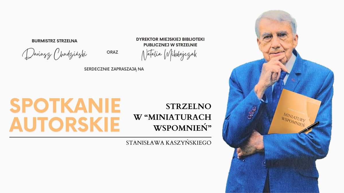 Burmistrz Strzelna Dariusz Chudziński oraz Dyrektor Miejskiej Biblioteki Publicznej w Strzelnie Natalia Mikołajczak serdecznie zapraszają na spotkanie autorskie STRZELNO w „Miniaturach wspomnień” Stanisława Kaszyńskiego, które odbędzie się 11 stycznia 2024 o godz. 11:00 w sali Klubu Senior + przy Miejskiej Bibliotece Publicznej w Strzelnie. Wstęp wolny. W trakcie spotkania będzie możliwość otrzymania wydanej publikacji z dedykacją od autora.