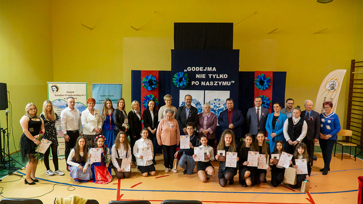 Dzisiaj w Szkole Podstawowej im. A. A. Michelsona w Strzelnie odbył się III Powiatowy Konkurs Gwary Kujawskiej i Wielkopolskiej „Godejma, nie tylko po naszymu”. W konkursie wzięli udział uczniowie trzech szkół. Galę konkursową uświetnił występ zespołu Kujawianki i Strzelnianki przy akompaniamencie Waldemara Krystkowiaka, taniec Przedszkolaków ZSP nr 1. Maciej Leszczyński zagrał na akordeonie, natomiast Zosia Wikaryczak wykonała piosenkę „Czerwone jabłuszko”. Wydarzenie poprowadziła Katarzyna Wawrzyniak oraz Dyrektor Szkoły Edyta Modrzejewska.