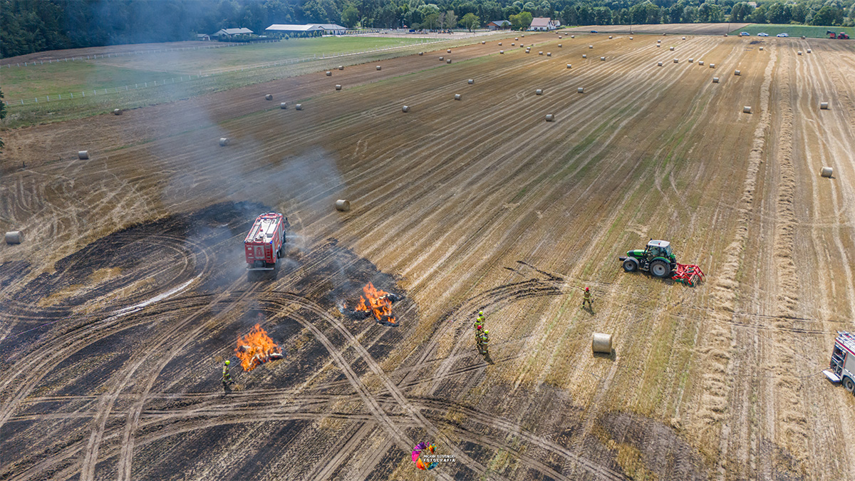 W piątek 19.07.2024 zastępy GCBA MAN TGM 18.340, GBA Star Man 1466 oraz GBA ,GCBA z JRG Mogilno, GCBA, GCBA z OSP Gębice, GBA z OSP Kwieciszewo zadysponowane przez SK KPPSP w Mogilnie zostali wezwani do pożaru ścierniska w Łąkiem gmina Strzelno, ogień powstał od prasy do słomy.