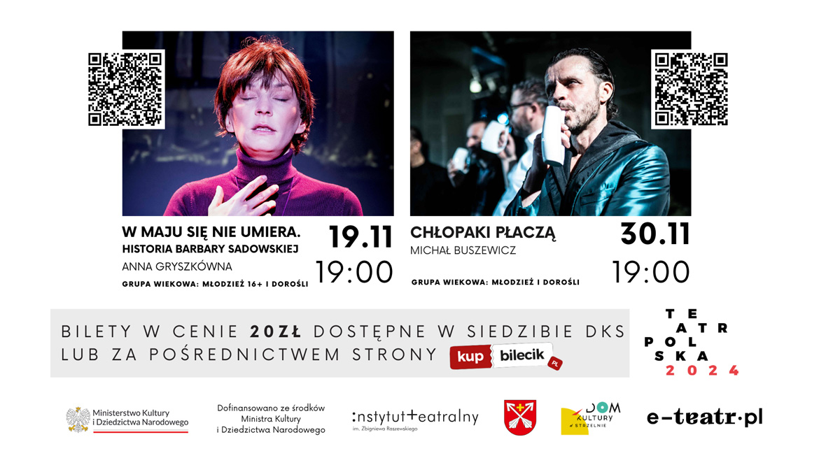 Bilety na każdy z nich można nabyć w cenie 20 zł za sztukę za w siedzibie DKS lub pośrednictwem portalu kupbilecik.plhttps://www.kupbilecik.pl/szukaj/?q=strzelno&qw=. Możecie tam również znaleźć więcej informacji o każdym ze spektakli.