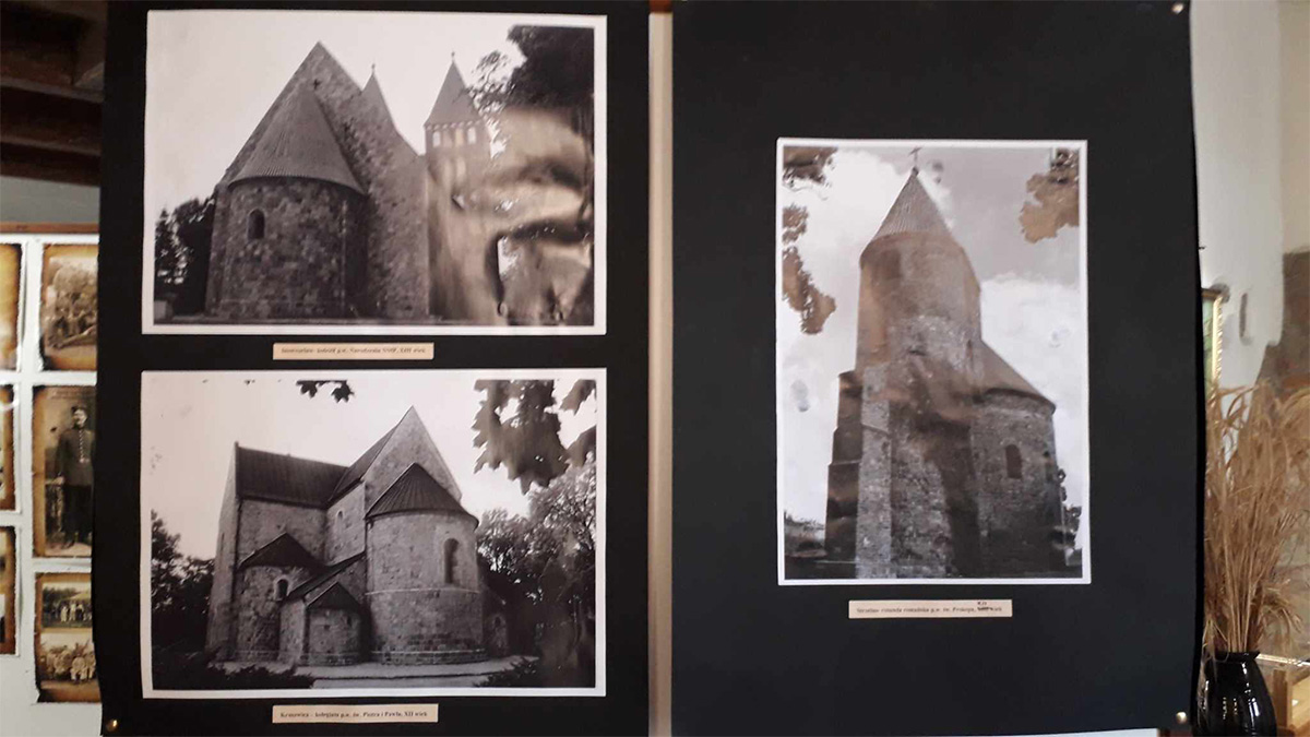 Prezentowana tutaj wystawa jest efektem dziennikarskich i kolekcjonerskich pasji inicjatora i twórcy polskiego Szlaku Romańskiego, Grzegorza B. Bednarka, który od ćwierćwiecza zajmuje się promocją europejskiej architektury z tamtego okresu, a także szlaków kulturowych z tym związanych. Archiwalne zdjęcia romańskich zabytków niemieckich pochodzą z wydawanej do II Wojny Światowej serii mini-albumów fotograficznych, zatytułowanej Die Blauen Bücher. Zdjęcia kolorowe są fotografiami autorstwa Grzegorza B. Bednarka i przedstawiają zabytki romańskie z europejskiej trasy kulturowej o nazwie Wege in die Romanik, przebiegającej przez cały land Dolnej Saksonii w Niemczech.