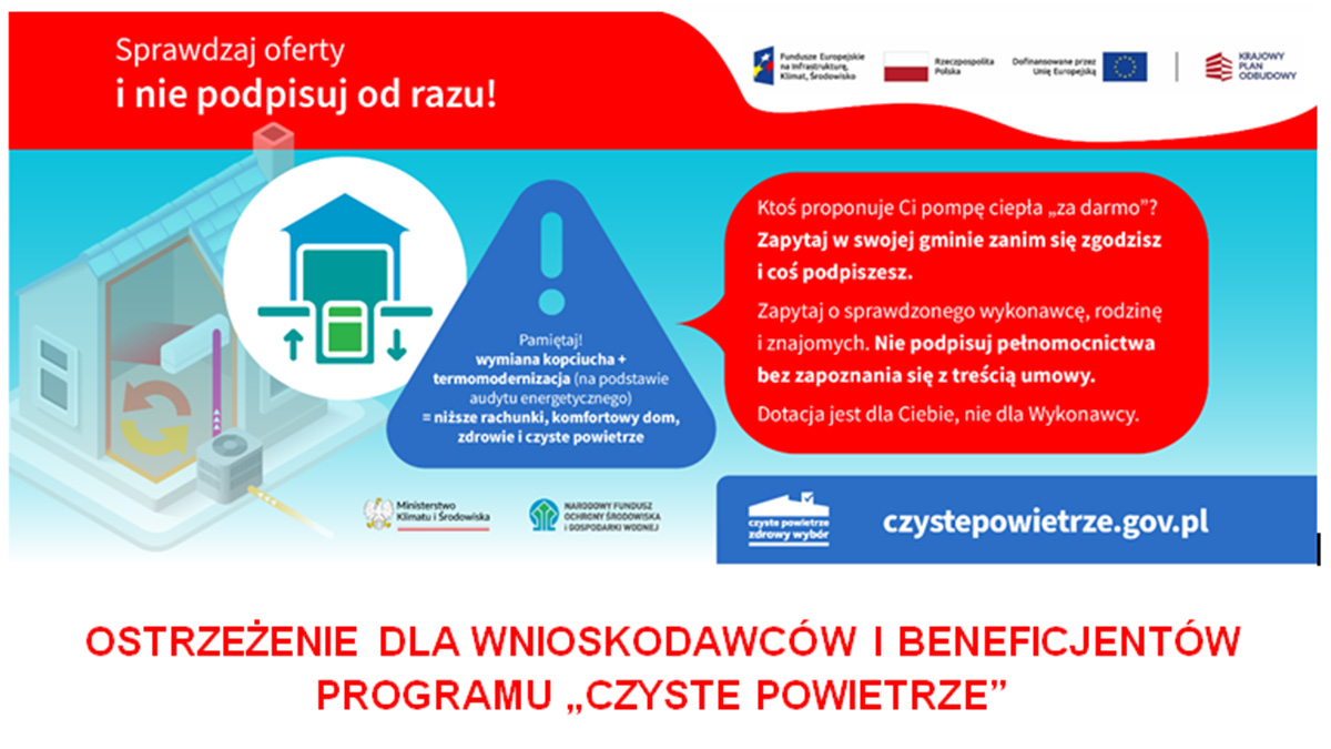 OSTRZEŻENIE DLA WNIOSKODAWCÓW I BENEFICJENTÓW PROGRAMU „CZYSTE POWIETRZE”