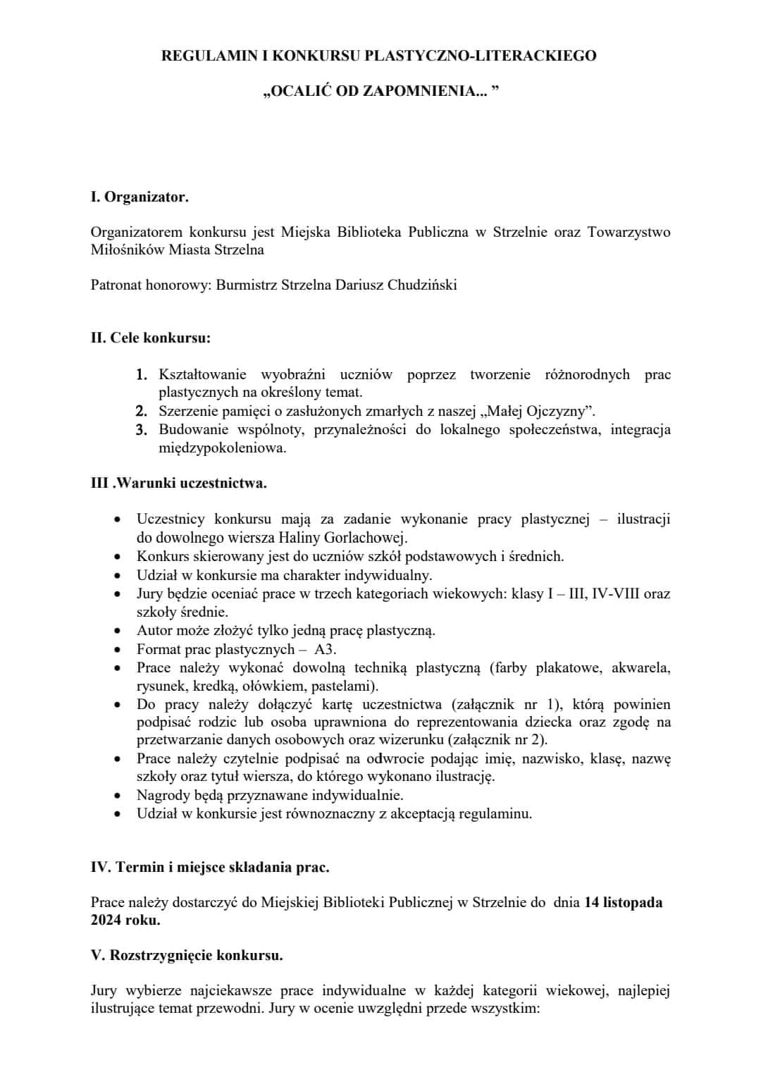 Z ogromną radością zapraszamy do udziału w autorskim projekcie „Ocalić od zapomnienia…”, który jest wspólną inicjatywą Miejskiej Biblioteki Publicznej w Strzelnie oraz Towarzystwa Miłośników Miasta Strzelna, organizowaną pod honorowym patronatem Burmistrza Strzelna, Pana Dariusza Chudzińskiego.