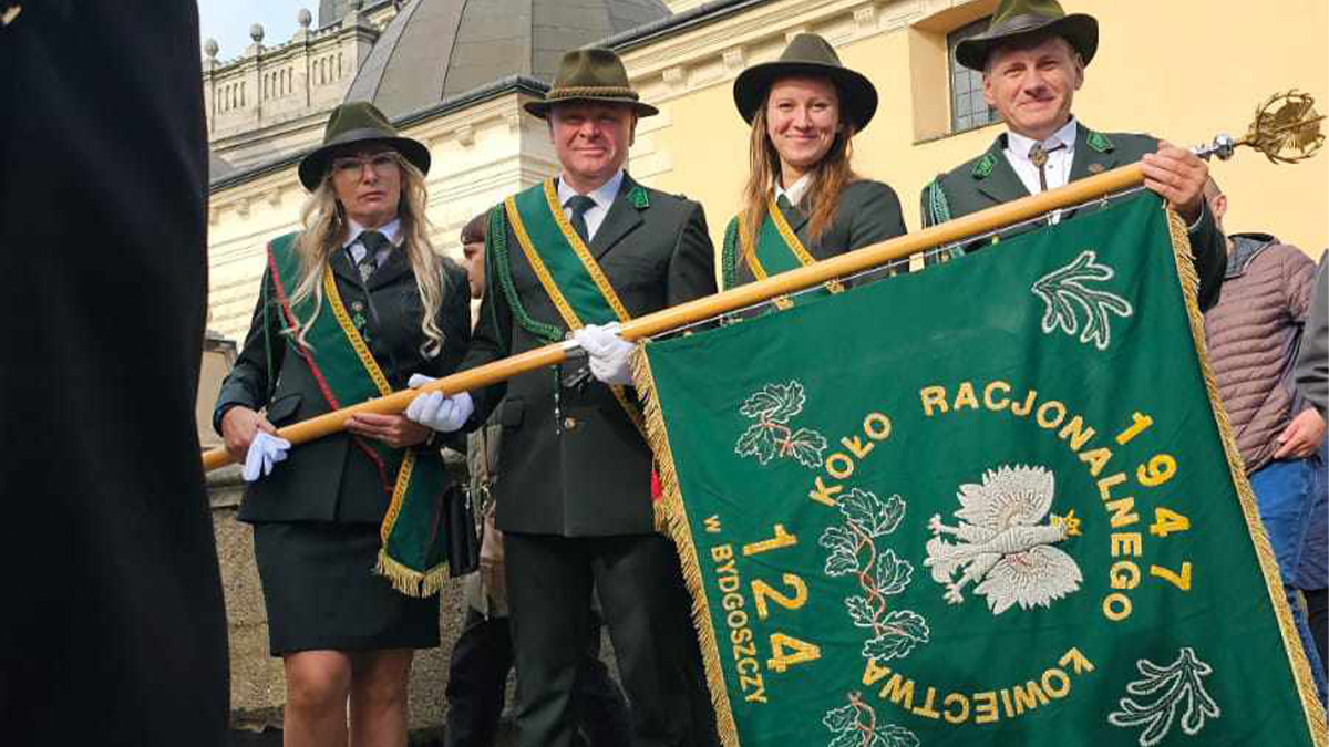 W tym roku oprócz Przemysława Maciejewskiego wzięły w niej udział dwie młode Diany, Arleta Wilczura i Julia Kaszyńska. Na jednym ze zdjęć widzimy Strzelnioków w towarzystwie łowczego krajowego kolegi Eugeniusza Grzeszczaka. Oprawa Mszy Świętej w Częstochowskiej Bazylice, odprawionej przez naszych kapelanów pod przewodnictwem kapelana krajowego księdza Sylwestra Dziedzica i biskupa Leszka Leszkiewicza została uświetniona przepiękną muzyką nawiązującą do tradycji łowieckiej. Niesamowite wrażenie robiły już nie dziesiątki, a setki sztandarów Braci od Świętego Huberta. „Duma wypełnia moje myśliwskie serce” powiedział Dariusz Chudziński