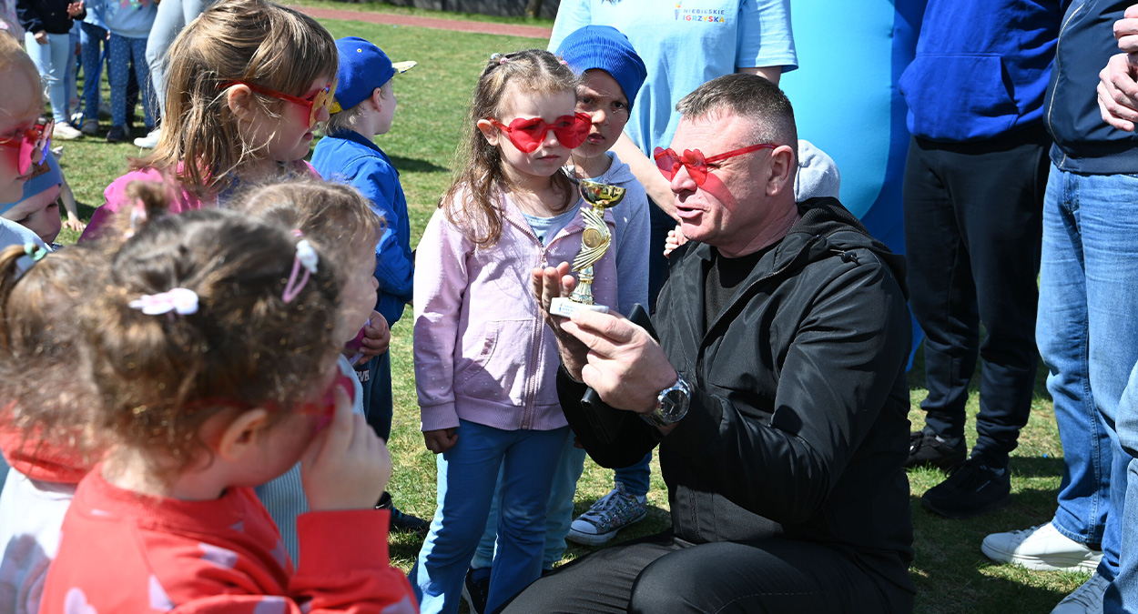 Uroczyste zakończenie Niebieskich Igrzysk odbyło się 24 kwietnia. W wydarzeniu uczestniczyli burmistrz Strzelna Dariusz Chudziński, radni powiatowi Piotr Cieślik i Marcin Czaplicki oraz radni gminni: przewodnicząca Emilia Walkowiak i Jarosław Marek. Goście wręczyli puchary i dyplomy wszystkim klasom i oddziałom przedszkolnym, podkreślając znaczenie działań na rzecz integracji i budowania świadomości społecznej.