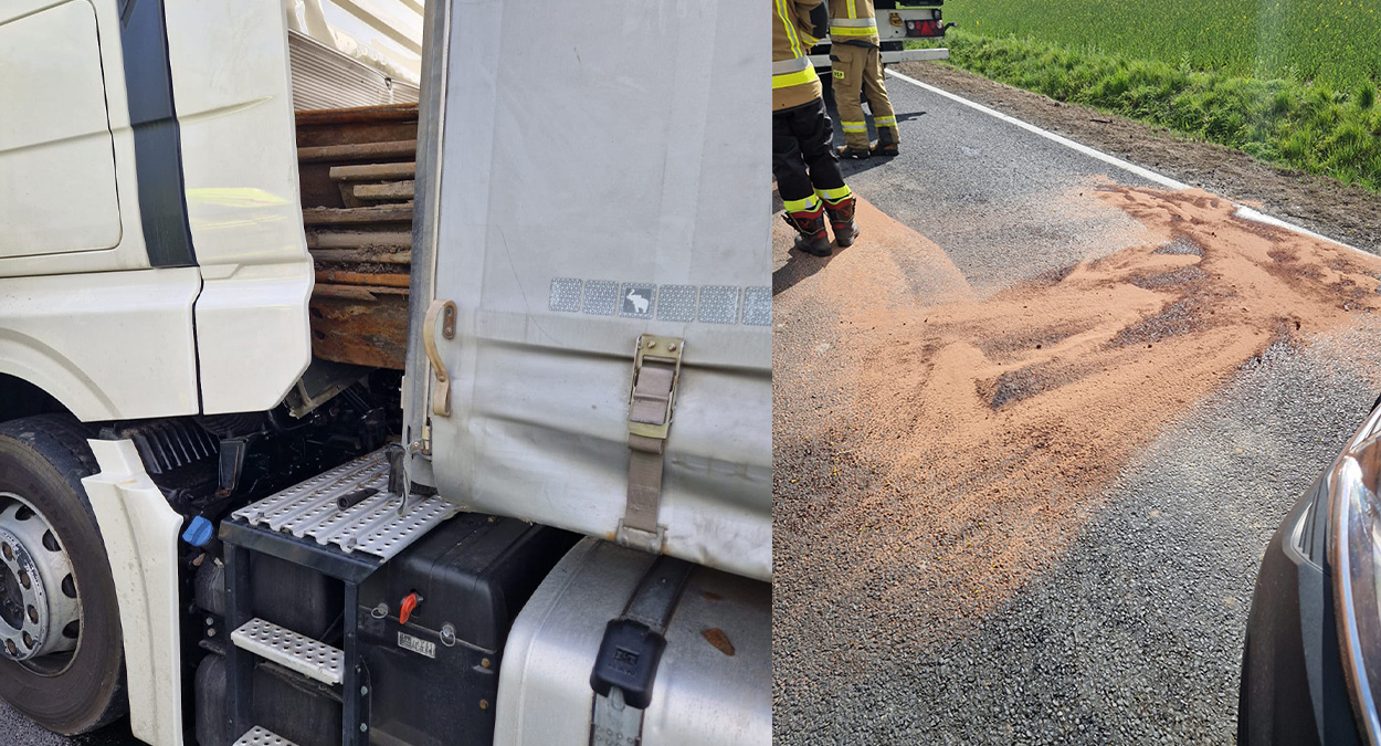 Jak wynika ze wstępnych informacji, w pojeździe ciężarowym doszło do rozszczelnienia układu paliwowego. Przyczyną awarii miało być przemieszczenie się ładunku znajdującego się na naczepie. W efekcie na jezdnię wydostał się olej napędowy, co mogło stwarzać zagrożenie dla innych uczestników ruchu.